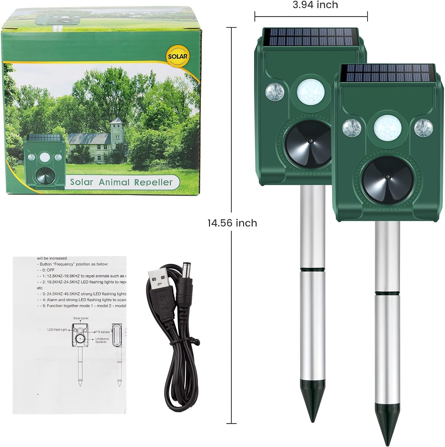 2-Pack Solar Ultrasonic Animal Repeller with Motion Sensor and Strobe Light for Yard and Garden