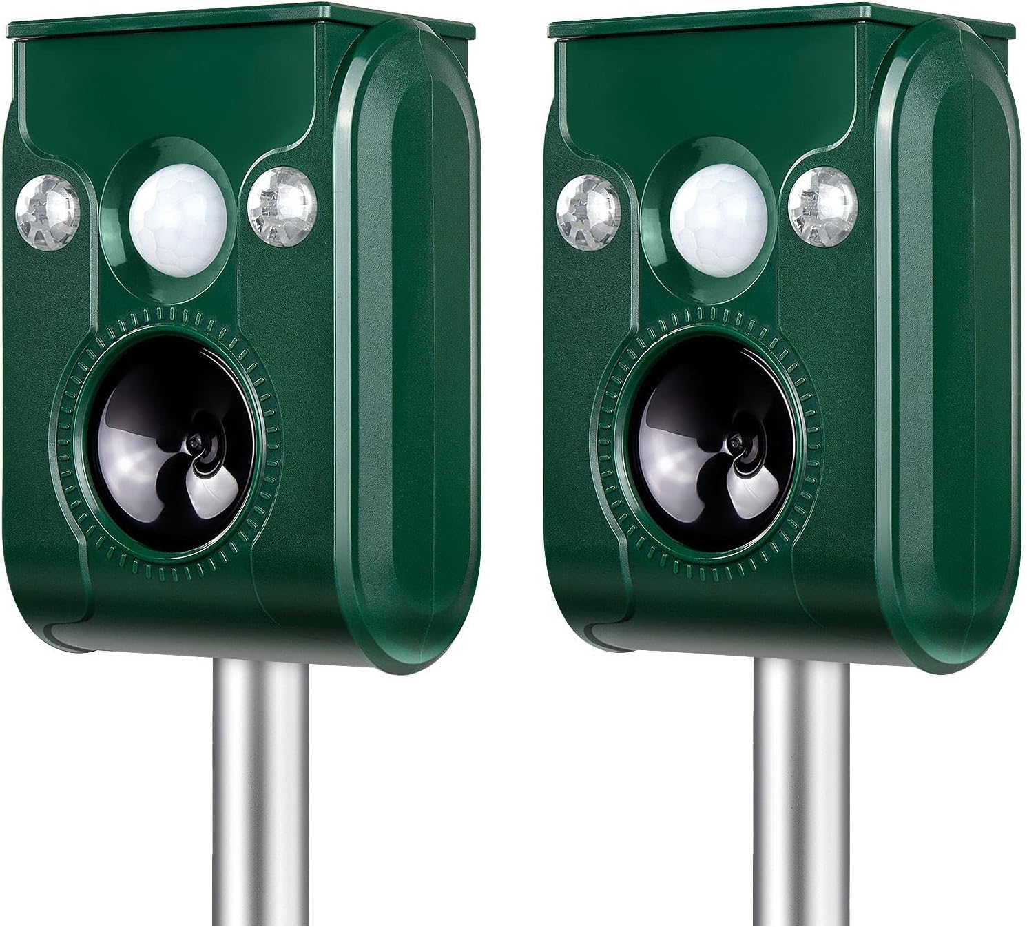 2-Pack 2025 Solar Ultrasonic Animal Repellent with Motion Detection and Deterrent Light for Yard