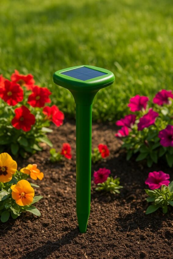Here’s how it works: the solar panel charges an internal battery during the day, and every 30–40 seconds the stake emits a soft vibration and ultrasonic pulse that travels through the soil. It’s mild enough to avoid alarming you or your pets but disruptive enough underground to convince burrowers to leave.